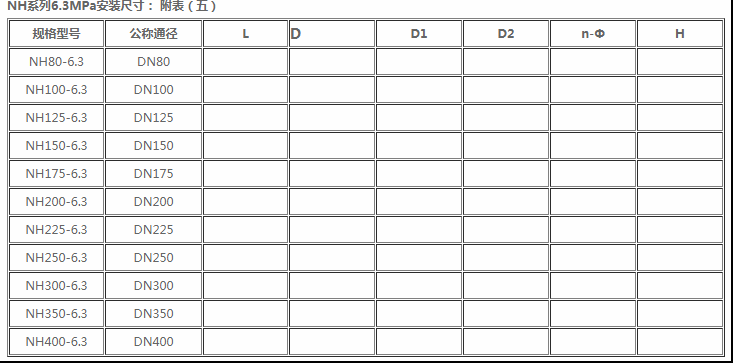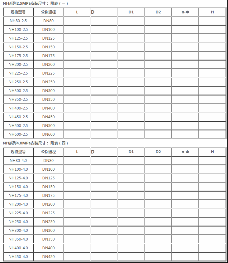 NH系列1.0MPa安裝尺寸: 附表(一)
