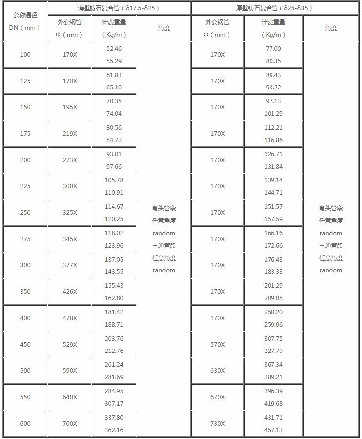 首頁>產(chǎn)品展廳>管接頭補(bǔ)償連器 > 鑄石復(fù)合管、三通管與彎頭管技術(shù)數(shù)據(jù)